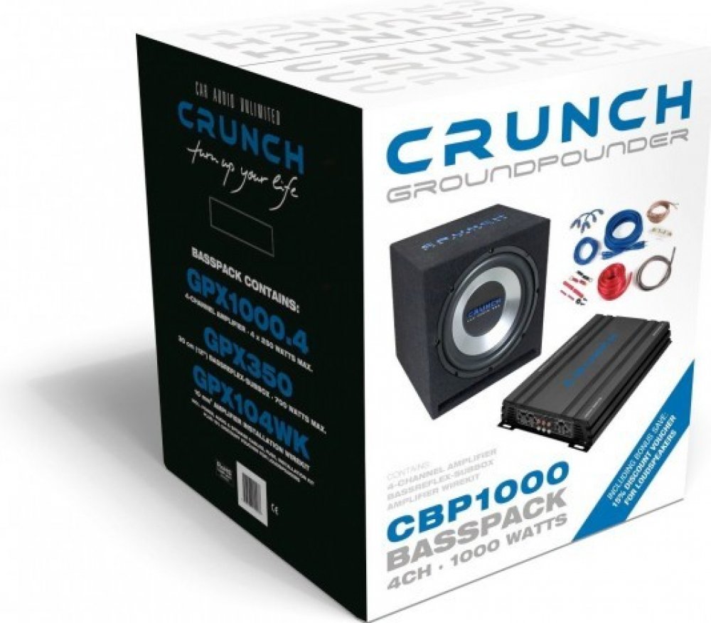 Se základní sérií zesilovačů Crunch GPX, přišly na trh také výhodné sety obsahující tyto zesilovače. Set obsahuje 30 cm subwoofer o výkonu 350 W, zesilovač Crunch GPX1000.4 a veškerou potřebnou kabeláž pro připojení. Výhodná cena tohoto setu vám v podstatě šetří náklady na kabeláž.