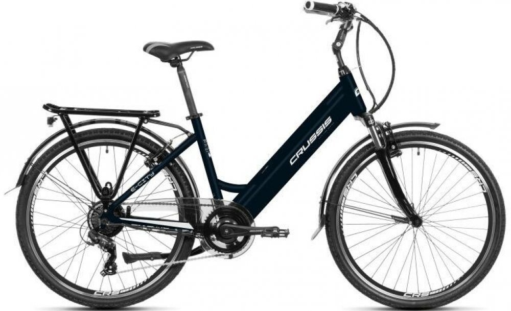 Crussis městská dámská 2025 140 km zadní integrované na rámu Bafang odpružená přední vidlice ráfkové hliníkové 30 Nm