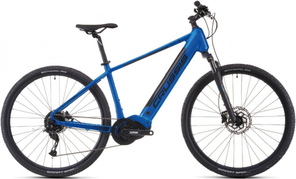 Crussis trekking/cross unisex 2026 130 km středové integrované na rámu Panasonic odpružená přední vidlice 63 mm kotoučové hliníkové Panasonic GX Power Plus 75 Nm