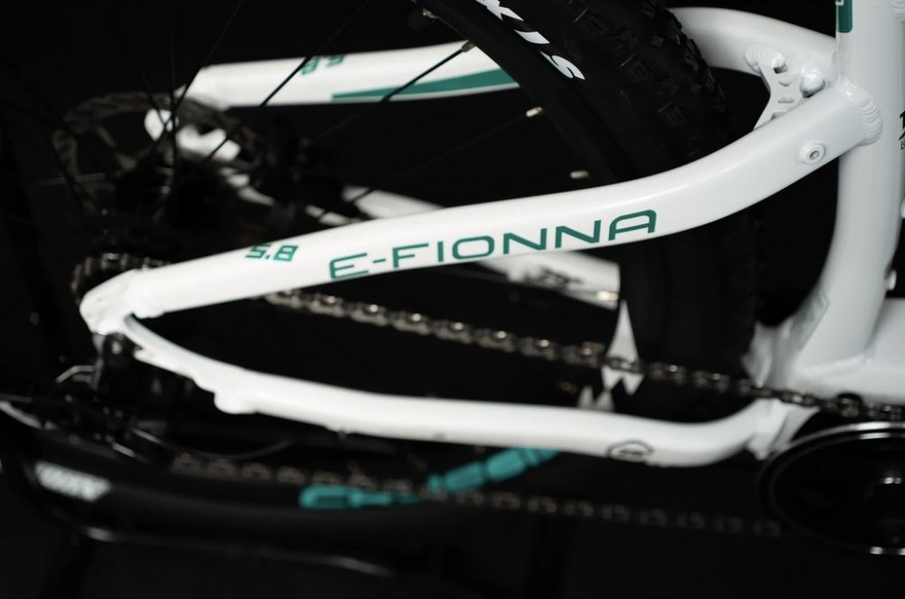 Elektrokolo e-Fionna 5.8 je vybaveno odpruženou vidlicí s pružinovým tlumením SUNTOUR XCT30 HLO DS 29" se zdvihem 100 mm. Pro přizpůsobení vidlice váze cyklisty stačí pootočením upravit přepětí pružiny a přizpůsobit ho tak hmotnosti a stylu jízdy jezdce. V terénu pak vidlice skvěle tlumí nárazy, zatímco na rovném povrchu zbytečně nepruží. Uzamyká se z korunky.