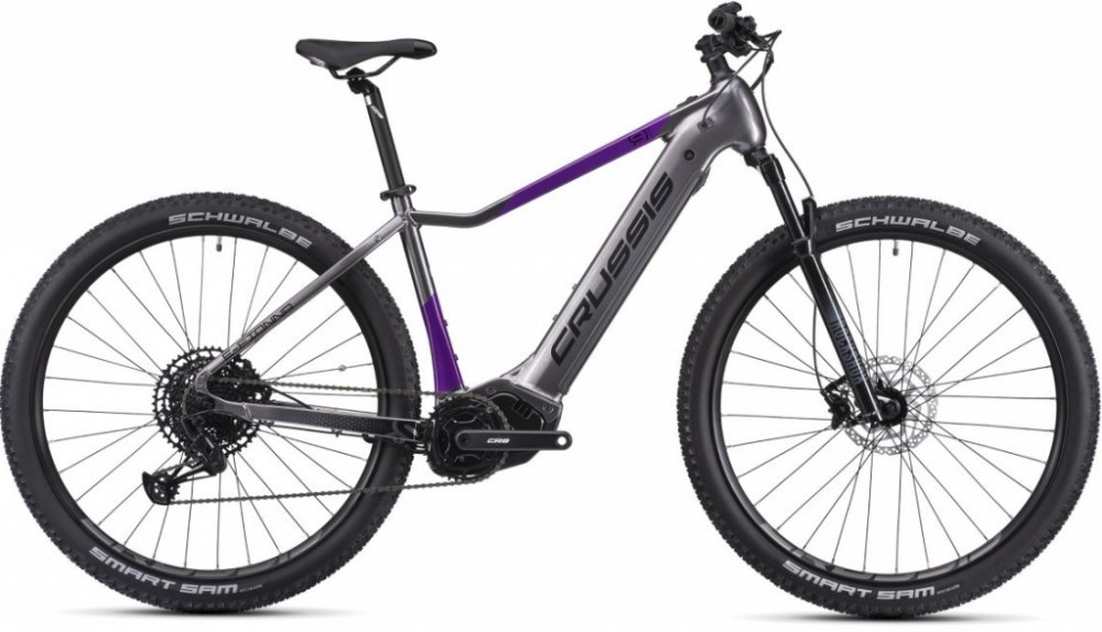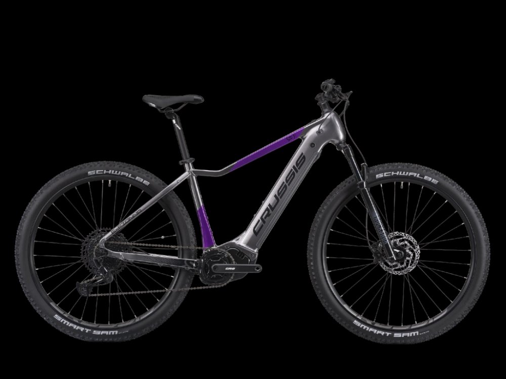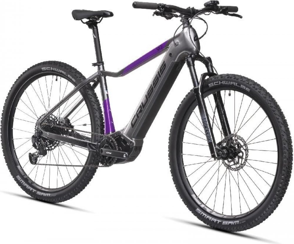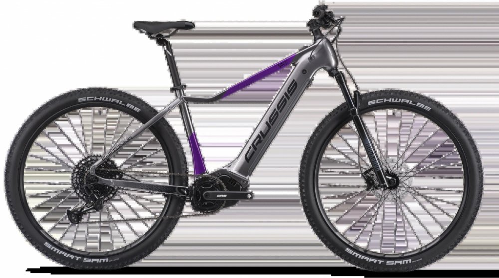 Crussis horská dámská 2025 200 km středové integrované na rámu Panasonic odpružená přední vidlice 100 mm SHIMANO Deore BR-MT410, hydraulické hliníkové Panasonic GX Ultimate 95 Nm