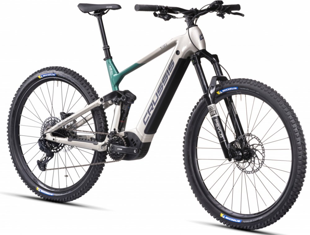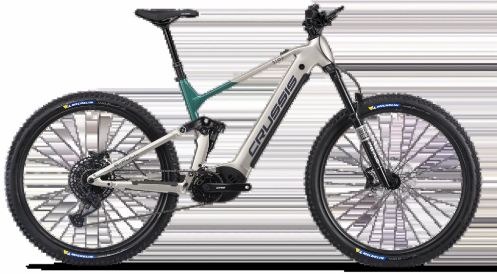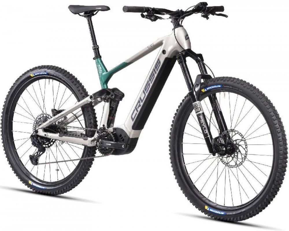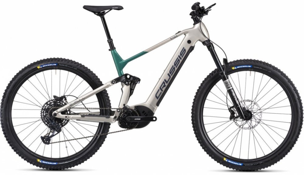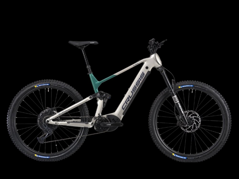 Crussis horská unisex 2025 200 km středové integrované na rámu Panasonic celoodpružená 150 mm SHIMANO Deore BR-MT420, hydraulické hliníkové Panasonic GX Ultimate 95 Nm