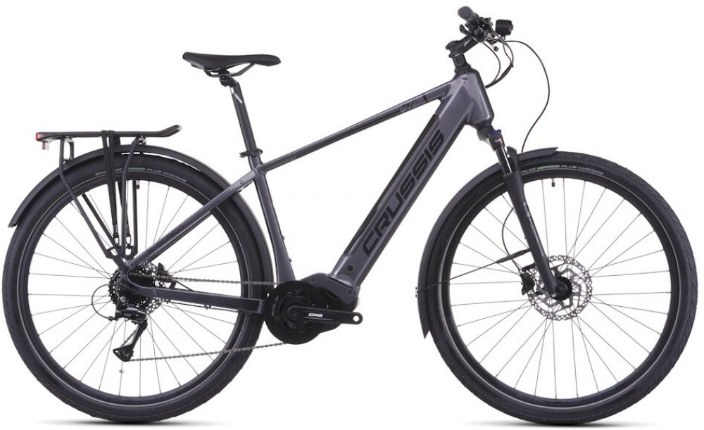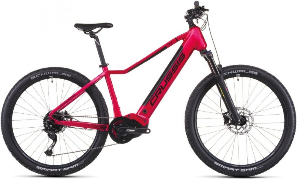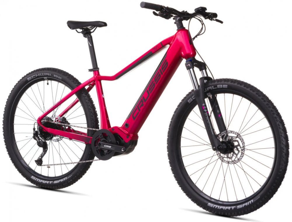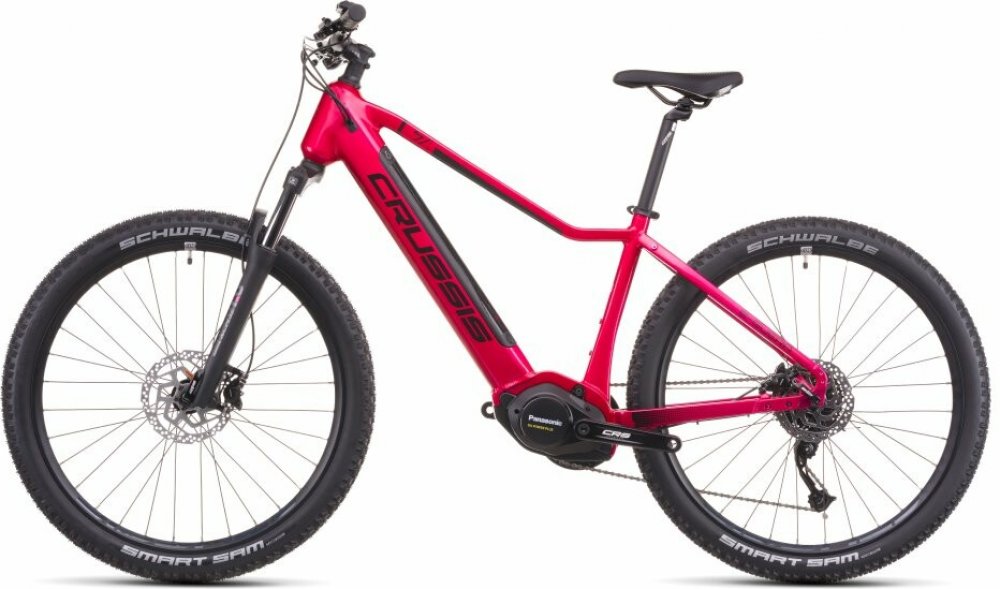Crussis horská dámská 2026 130 km středové integrované na rámu Panasonic odpružená přední vidlice 100 mm Shimano BR-MT200, hydraulické hliníkové Panasonic GX Power Plus 75 Nm