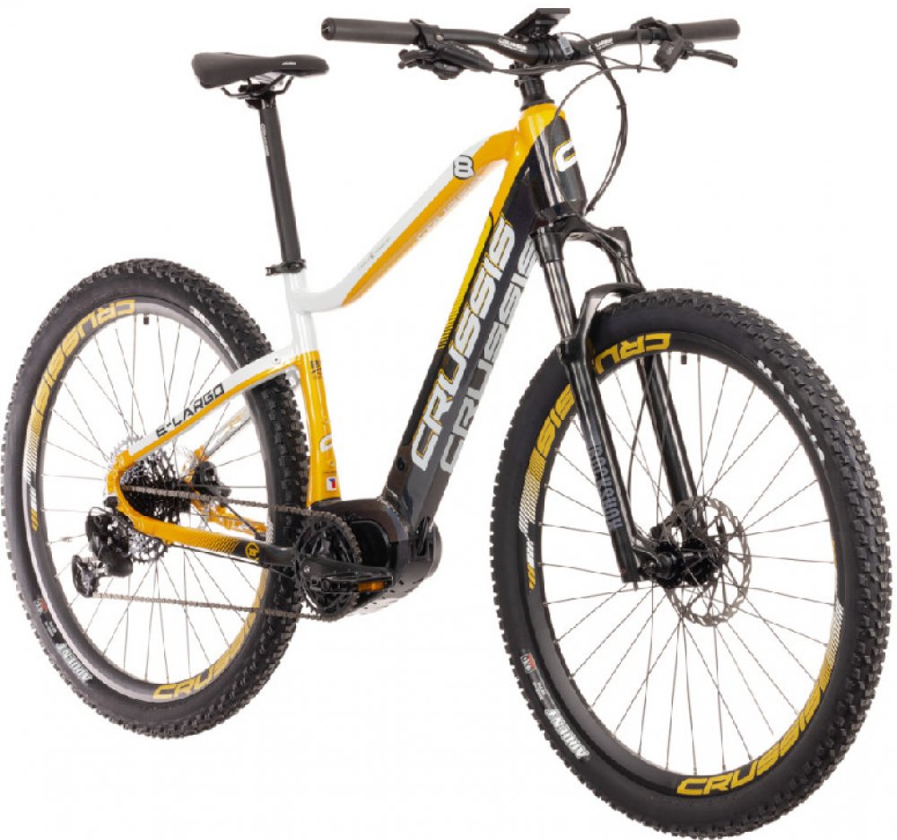 Crussis horská pánská 2022 150 km středové integrované na rámu Bafang odpružená přední vidlice 100 mm kotoučové hliníkové Bafang M400 80 Nm