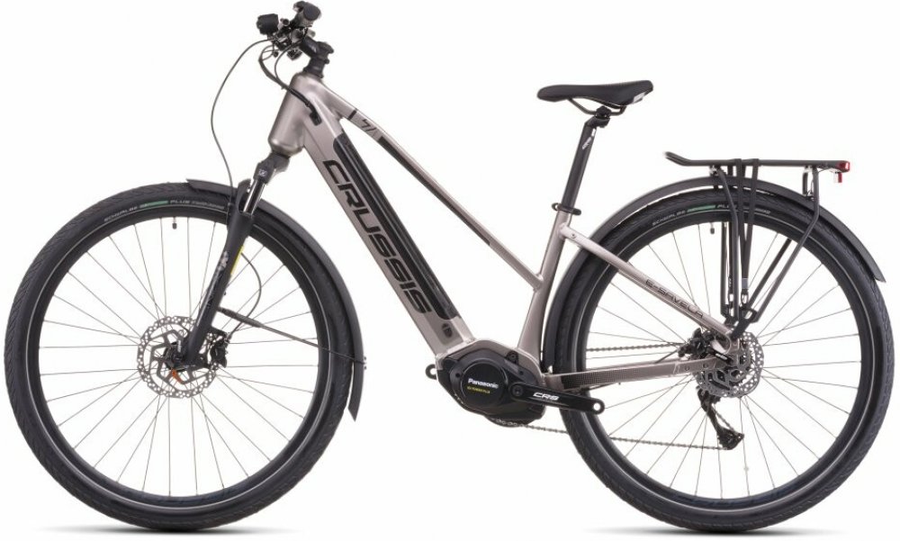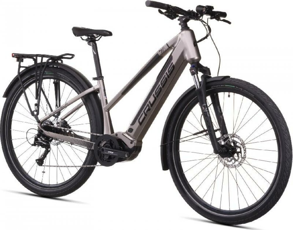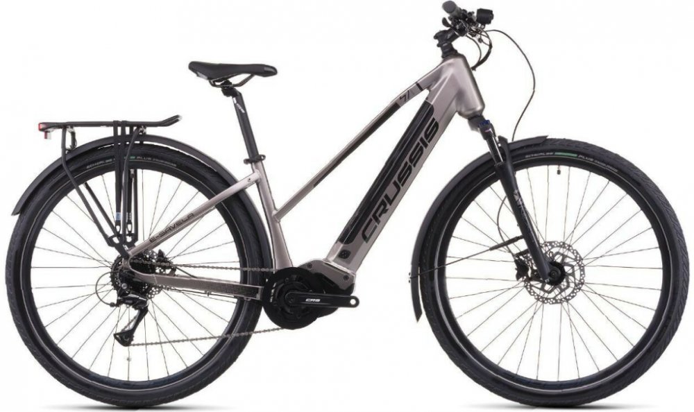Crussis trekking/cross dámská 2026 130 km středové na rámu Panasonic 63 mm SHIMANO BR-MT200 hliníkové Panasonic GX Power Plus 75 Nm