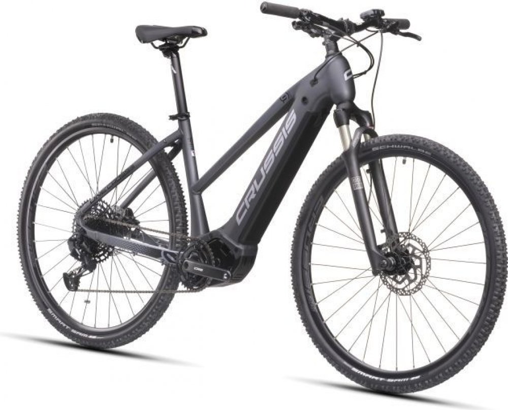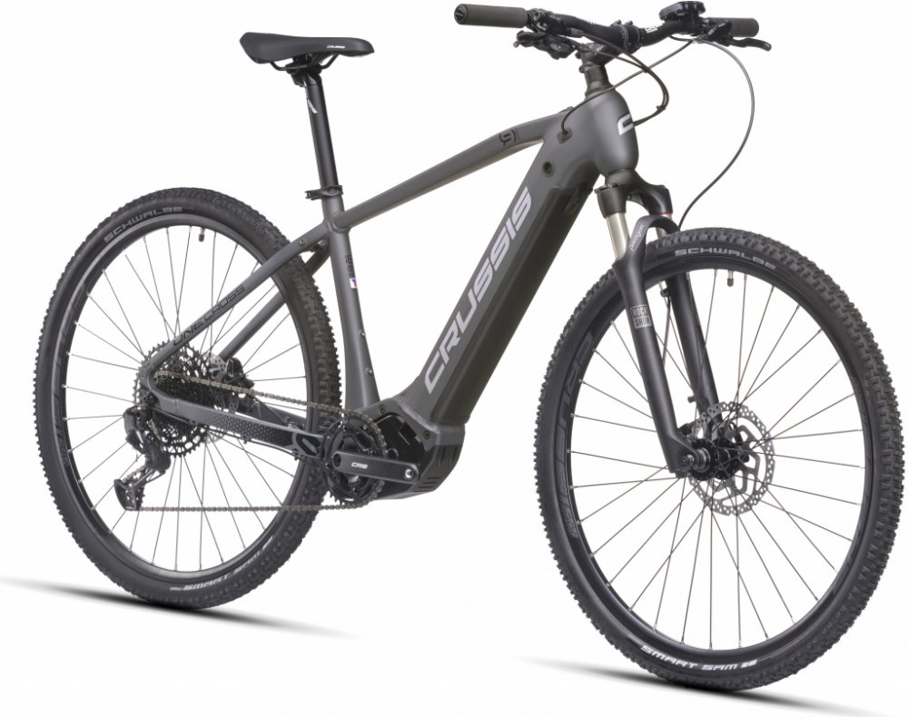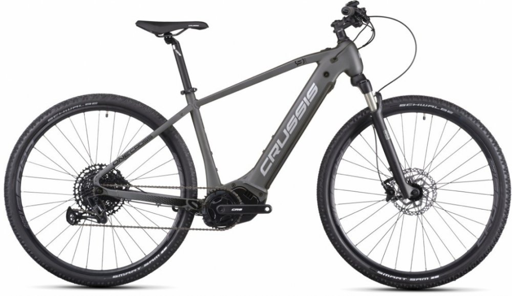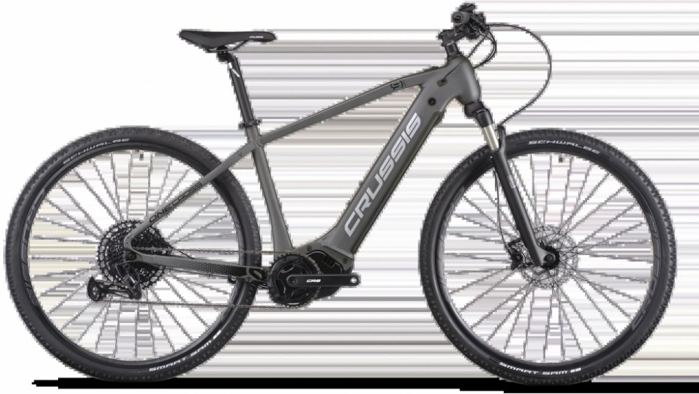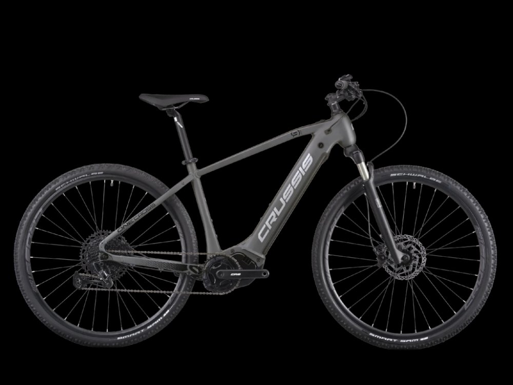 Crussis trekking/cross pánská 2025 170 km středové na rámu Panasonic odpružená přední vidlice 65 mm SHIMANO Deore BR-MT410, hydraulické hliníkové Panasonic GX Ultimate 95 Nm