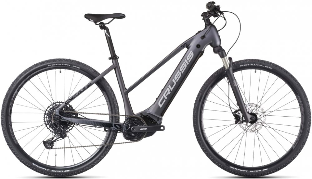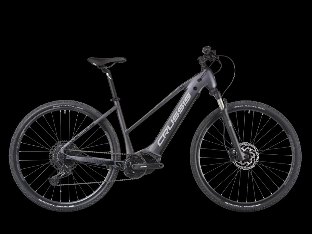 Crussis trekking/cross dámská 2025 170 km středové integrované na rámu Panasonic odpružená přední vidlice 65 mm kotoučové hliníkové Panasonic GX Ultimate 95 Nm