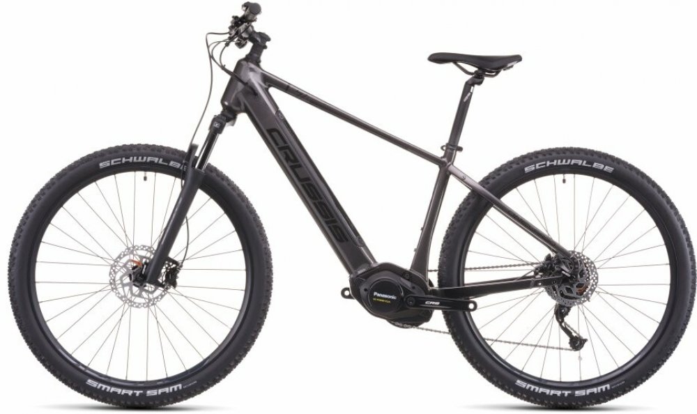 Crussis horská pánská 2026 130 km středové integrované na rámu Panasonic odpružená přední vidlice 100 mm kotoučové hliníkové Panasonic GX Power Plus 75 Nm