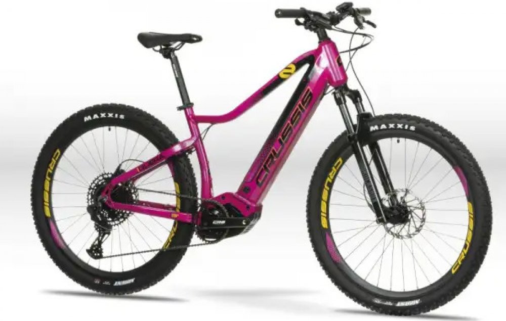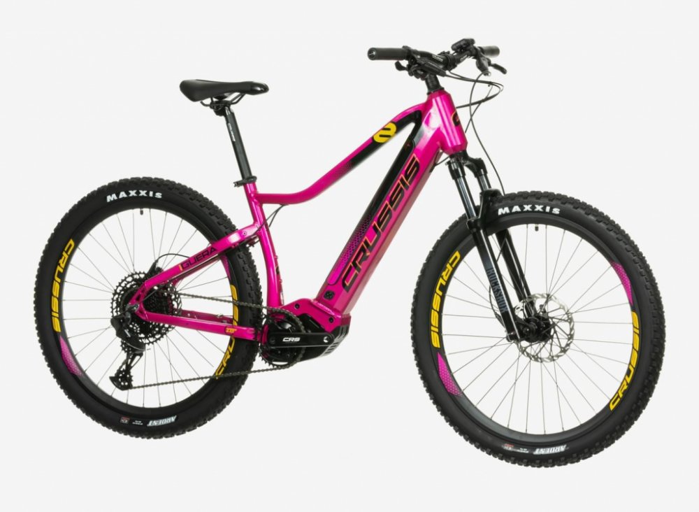 Crussis horská dámská 2023 170 km středové integrované na rámu Panasonic odpružená přední vidlice 100 mm kotoučové hliníkové Panasonic GX Power Plus 75 Nm