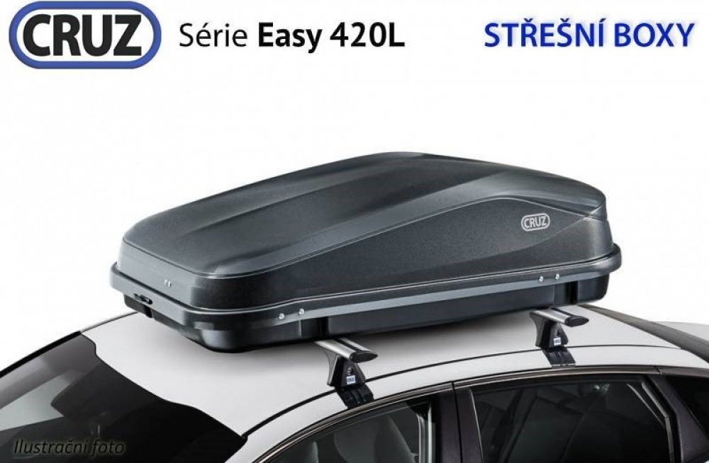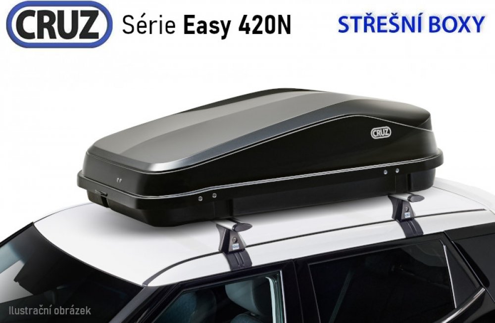 Střešní box CRUZ EASY 420N, lesklá černá Tento spolehlivý box vyniká hezkým designem a výbornými aerodynamickými vlastnostmi. Vykazuje nízký odpor vzduchu i hluku a přispívá k úspoře paliva. K upevnění boxu na vozidlo není potřeba nářadí. Je vybaven nejmodernějším systémem vzpěr Double Action z nylonu a skelných vláken a spolehlivým upínáním pomocí U sponek. Box je vhodný pro použití jako přídavný...