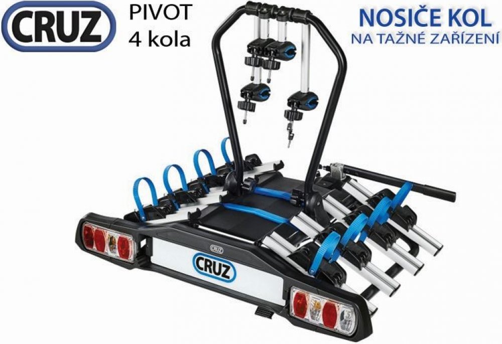 Nosič kol na tažné zařízení CRUZ Pivot na 4 kola s moderním designem a špičkovými vlastnostmi. K dispozici také nosič kol na tažné zařízení CRUZ Pivot pro 3 kola. Atraktivní design s elegantní kombinací materiálů. Může být upevněn na většině tažných zařízení. Nosič je sklopný pomocí pedálu, což umožňuje snadný a rychlý přístup do zavazadlového prostoru i s upevněnými koly. Rychlé uchycení kol pomo...