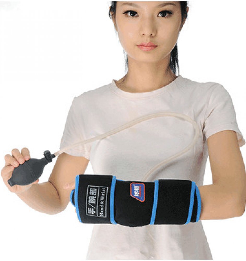 Návlek s ruční pumpou je skladný a je tedy možné ho používat doma, nebo ihned v šatně po tréninku. Pro chladivou kompresi je potřeba mít gelovou vložku nachlazenou z ledničky, či mrazničky.