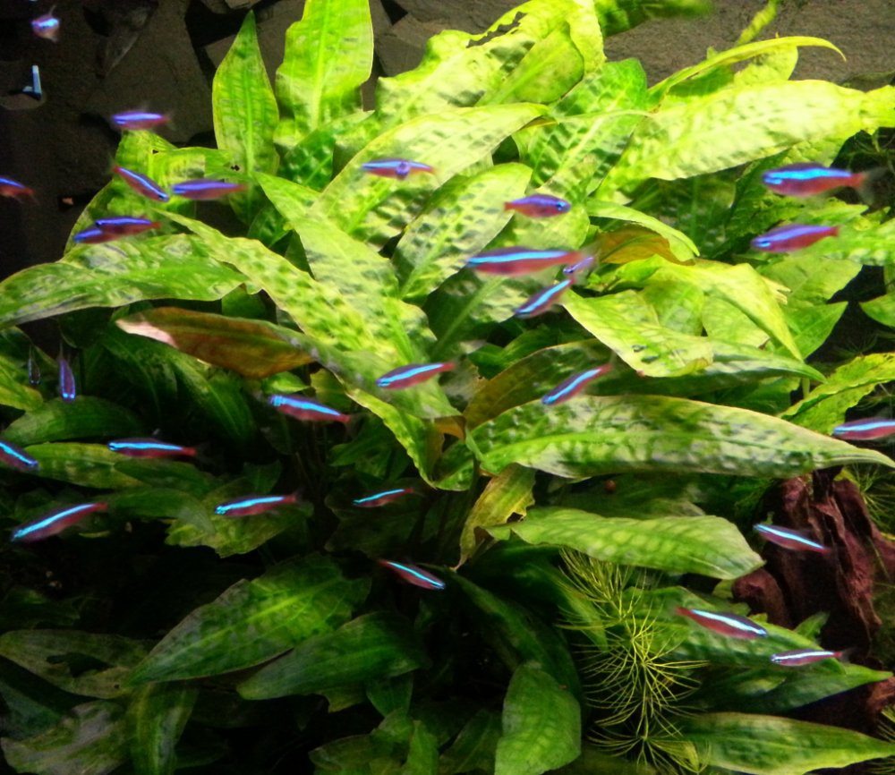 při polostínu nebo slabším osvětlení vytváří postupně husté porosty po celém dnu akvária a zrychluje růst