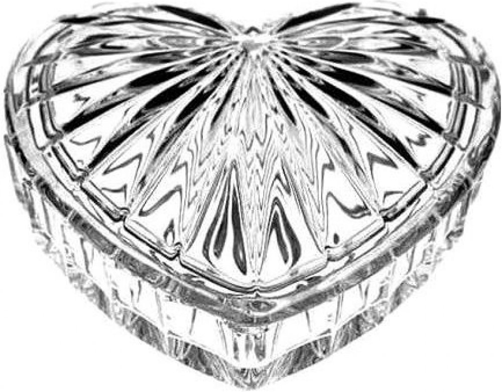 Dózu s víčkem ve tvaru srdce z olovnatého křišťálu můžete použít jako cukřenku, dóźu na malé bonbony nebo jako šperkovnici. Rovněž jí uděláte radost ženám ve svém okolí či v rodině. Průměr dózy je 11 cm. Dóza je zabalen v tmavě modré dárkové krabici. Lze mýt v myčce.
