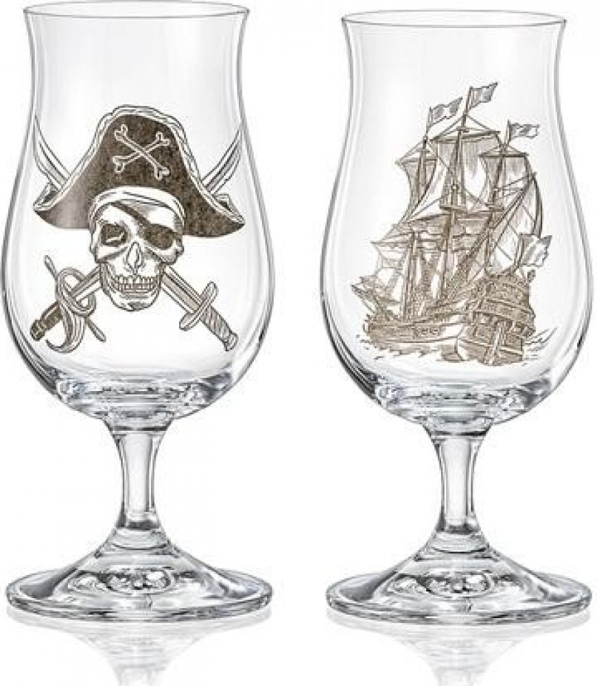 Kvalitní rum by se měl vychutnávat z kvalitních sklenic. Současný moderní trend je podávání rumů do sklenic na stopce. Sklenice by měla být ve spodní části širší a u ústního okraje užší, aby vynikla vůně rumu. A právě tento set Bucaneer o objemu 190 ml je k tomuto účelu navržen. Skleničky jsou ozdobené potiskem pirátské lodi a lebky se zkříženými šavlemi jako připomenutí toho, kde se tento lahodný nápoj nejvíce požíval. Baleno v dárkové krabičce. Vyrobeno z čirého bezolovnatého křišťálu s jemně zabroušeným okrajem sklenice. Nevhodné do myčky.