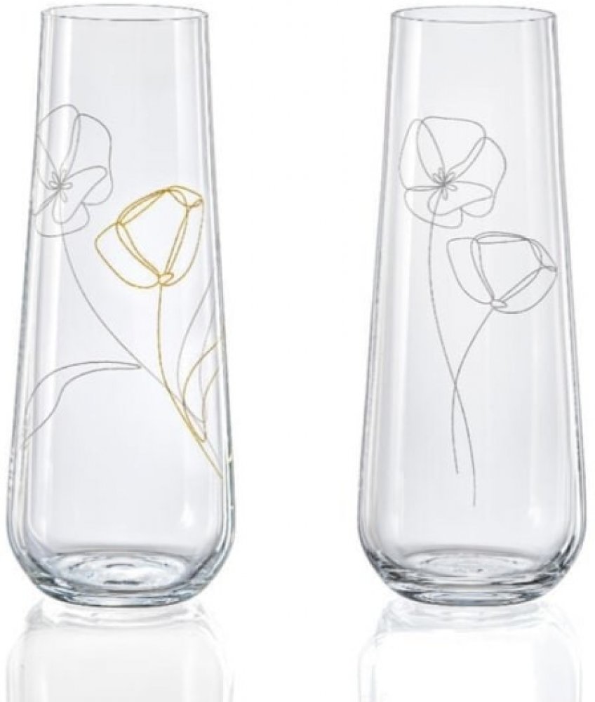 Přestože Flowers 250 ml nestojí na vysoké nožce, na eleganci jim to neubírá ani v nejmenším, právě naopak. Sklenice mají typický úzký tvar vhodný pro šumivá a perlivá vína. Set obsahuje dvě sklenice se zlato-stříbrnými květy a dvě s čistě stříbrnými. Kvalitní a praktický dárek české výroby. Vyrobeno z čirého bezolovnatého křišťálu s jemně zabroušeným okrajem sklenice. Nevhodné do myčky.
