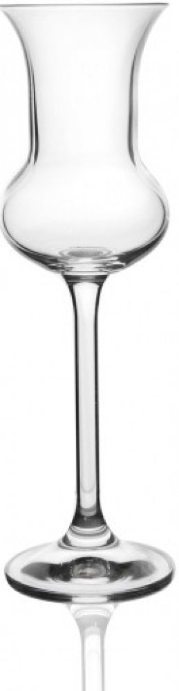 Elegantní skleněná odlivka na nožce z bezolovnatého křišťálového skla určená k podávání rumu, bylinných likérů, ovocných pálenek a dalších destilátů. Tenké stěny sklenice mají hladký, jemně zabroušený okraj.