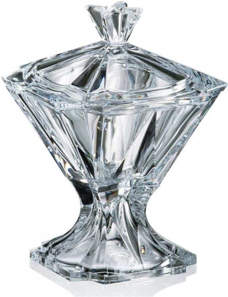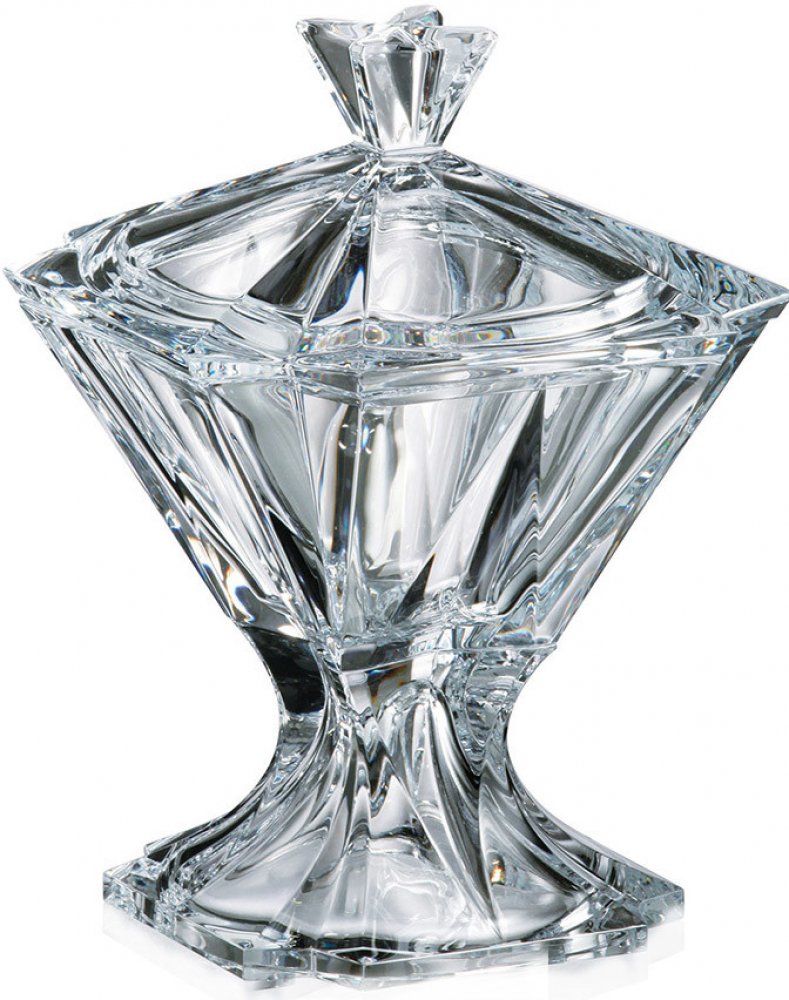 Křišťálová cukrářská mísa byla vyrobena z křišťálového skla nejvyšší kvality. Sklo je dokonale čiré a miska se na stole krásně vyjímá. Křišťálová miska je ideální na čokoládu, cukrovinky, sušenky; menší velikost lze použít také jako cukřenku. Křišťálová miska na čokoládu na nožce z řady METROPOLITANMateriál: křišťálové skloVýška: 26 cm.