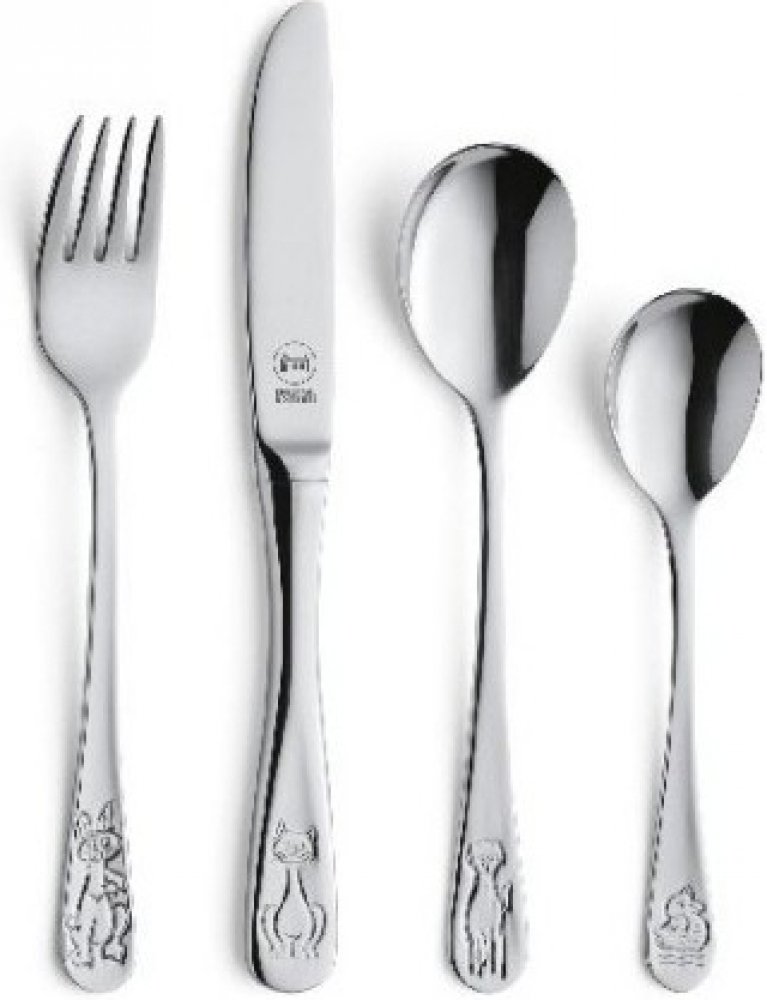 Velikost a tvar jsou uzpůsobeny malým pusinkám a ručkám. Všechny příbory mají speciální ergonomii. Na konci polévkové lžíce, nože, vidličky a čajové lžičky je vyryt roztomilý motiv zvířátka, který bude nápomocný pro snadné učení s příborem.