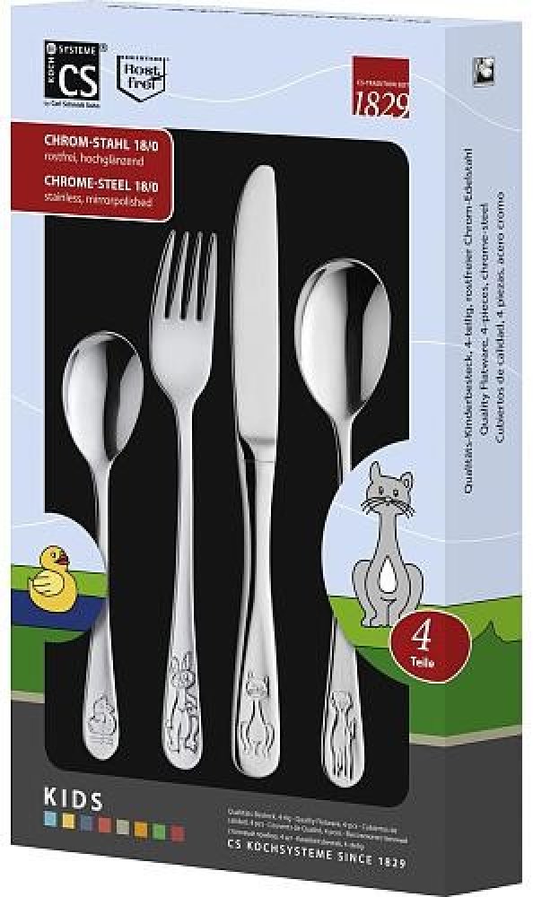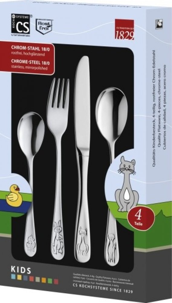 V CS Solingen dětské příbory vyrobili z prověřené nerezové oceli v lesku. Jde o odolný materiál, který se velmi snadno udržuje a odolává vůním a potravinovým kyselinám. Zásluhou kvalitního provedení se příbory dají mýt v myčce.
