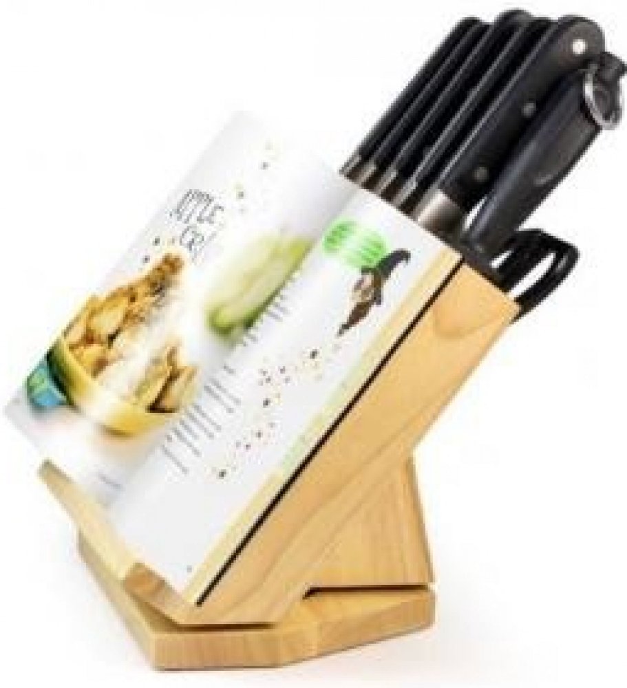 * dřevěný blok je vybaven držákem na tablet, mobil, kuchařku,..