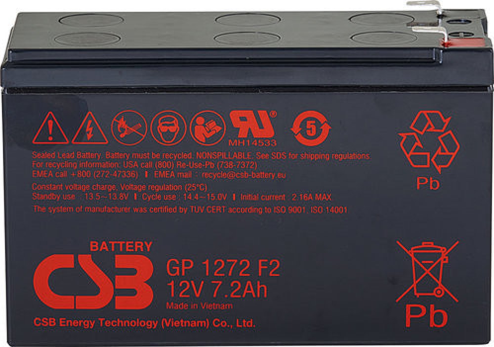 CSB battery Modelová řada GP - optimální životnost 4-6 let. Použití: Především záložní zdroje, ale i všeobecné použití. Akumulátor velmi vysoké kvality. Konstruovaný pro aplikaci v nejnáročnějších prostředí. Vhodný pro použití především v záložních zdrojích (UPS), elektronických požárních systé...