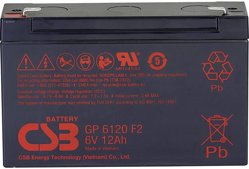 CSB battery Modelová řada GP - optimální životnost 4-6 let. Použití: Především záložní zdroje, ale i všeobecné použití. Akumulátor velmi vysoké kvality. Konstruovaný pro aplikaci v nejnáročnějších prostředí. Vhodný pro použití především v záložních zdrojích (UPS), elektronických požárních systémech (EPS), elektronických zabezpečovacích systémech a telekomunikacích. Výrobky CSB používají světoznámí producenti výpočetní a kancelářské techniky jako například: POWERWARE, APC, LIBERT, MGE, RIELLO, SICON SOCOMEC, IBM, ASCOM, a další. Kvalitu akumulátorů, použitých např. v záložních zdrojích, zajišťuje několik vlastností. Jednou z hlavních je požadavek na stejné fyzikální vlastnosti jednotlivých bateriových článků, zapojených sériově nebo sério-paralelně. Při splnění této podmínky je zaručena vysoká životnost. Akumulátory CSB tuto podmínku splňují a to dokáží ocenit milióny uživatelů záložních zdrojů na celém světě.
