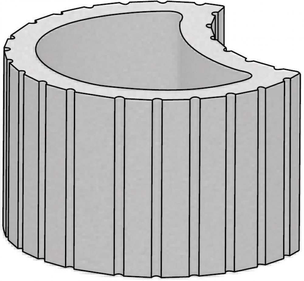 Tvar prvku s kruhovou výsečí účelně slučuje svou praktickou a dekorativní funkci. Doporučená výška betonové opěrné zdi by neměla přesáhnout 1,6 metru. Velikost květináče a plochy určené pro osazení vegetací je více než dostačující pro osazení menšími okrasnými či užitkovými rostlinami. Systém je variabilní a umožňuje různá prostorová řešení strmých svahů a to nejen skladbou, ale také různým barevn...