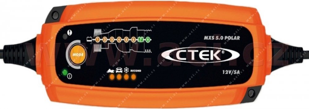 MXS 5.0 POLAR Extreme je plně automatická 8 kroková nabíječka. Nabíjecí proud je 5 A. Je určena pro 12 V baterie od 1,2 do 110 Ah a je vhodný až do 160 Ah pro udržovací nabíjení.