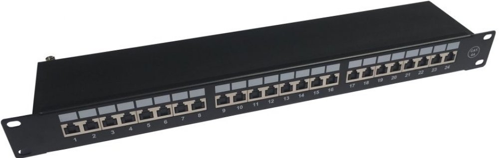 Stíněný patch panel Ctnet kategorie 6A je patch panel s IDC svorkovnicí 110/Krone. Svorkovnice je označena podle standardu T568A i T568B. Součástí těla panelu je vyvazovací lišta, která slouží k přehlednému uspořádání a pevnému uchycení datového kabelu. Patch panely Ctnet splňují požadavky na komponenty kategorie 5E/Class D, 6/Class E, 6A/Class EA definované v mezinárodních normách ANSI/TIA 568, ISO/IEC 11801 a EN 50173. Klíčové vlastnosti CTnet Patch panelu 24 port FTP cat.6AStíněný panel kategorie 6AVčetně vyvazovací lištyStandardní barva patch panelu je černá RAL9001Velikost v datovém rozvaděči je 1U