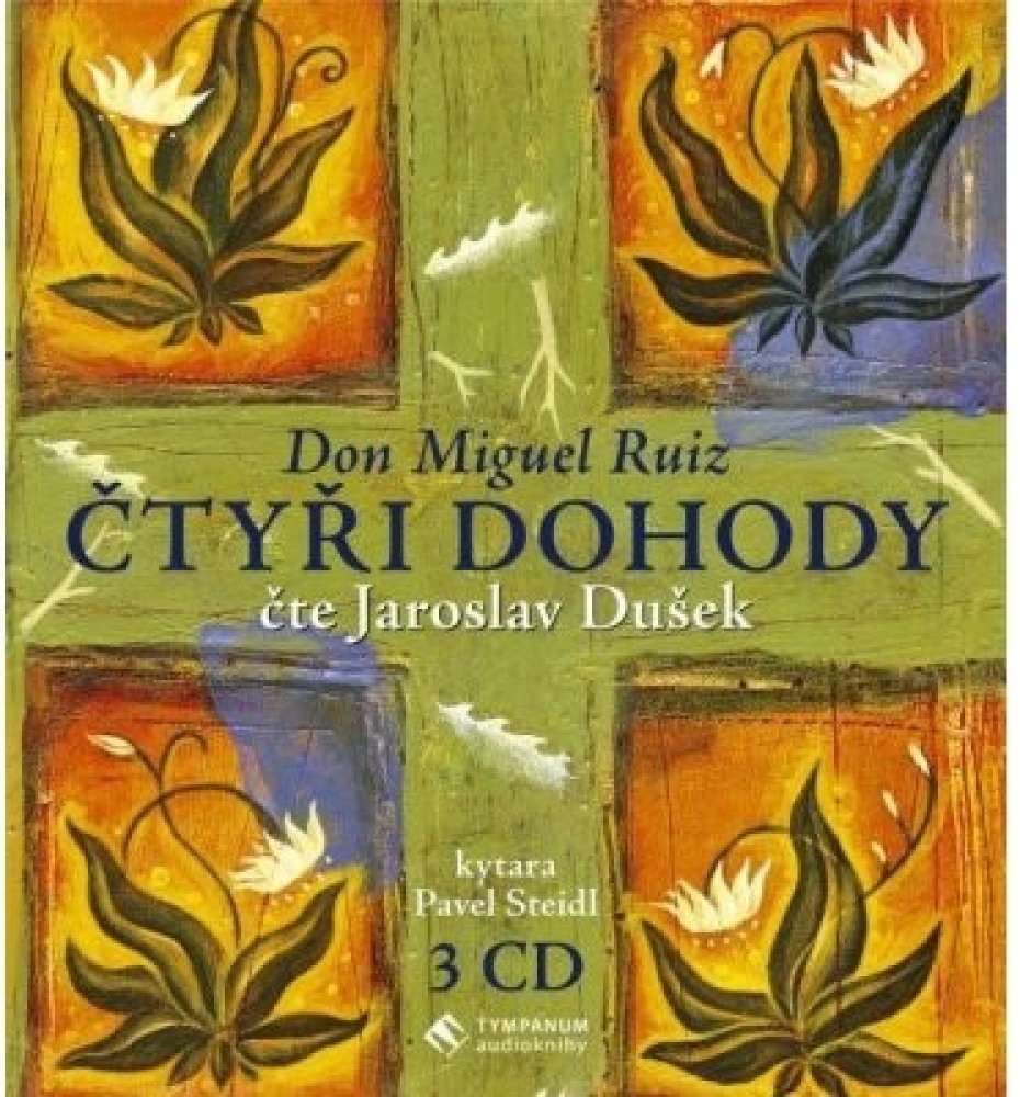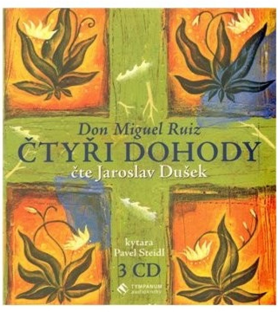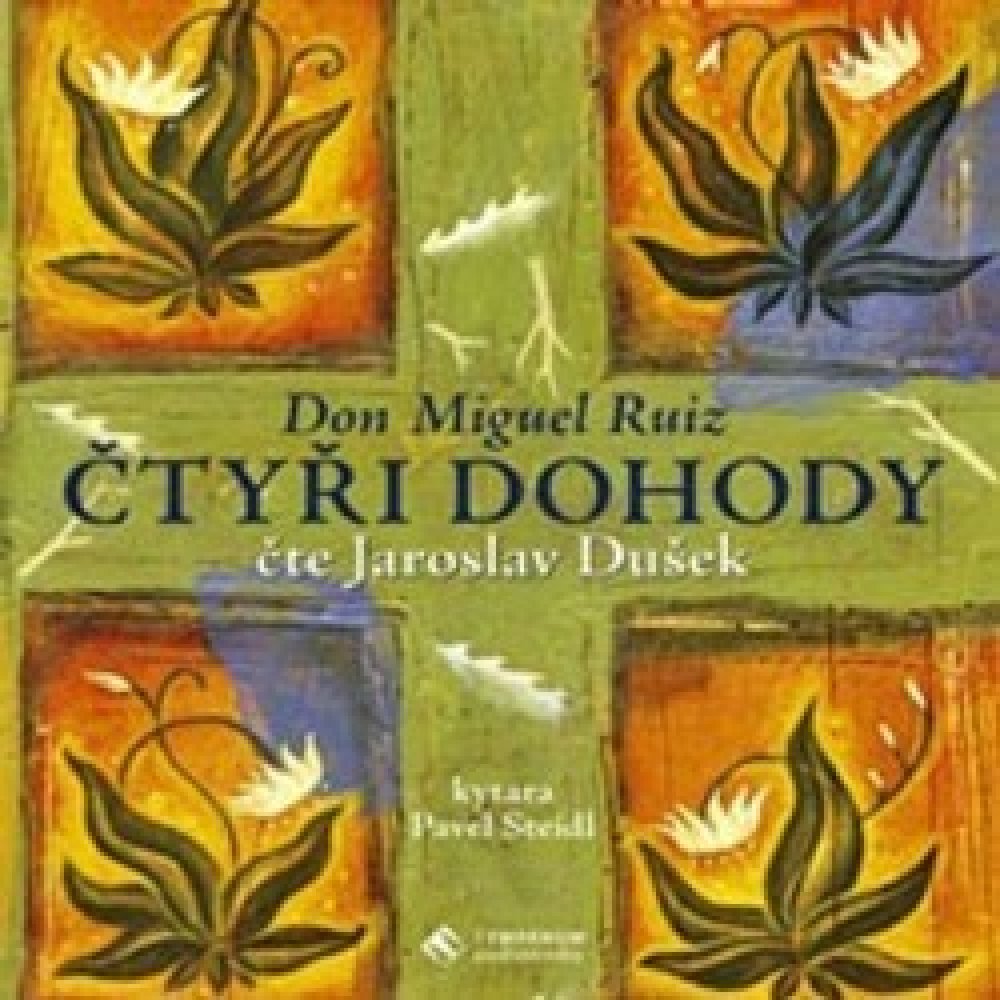 Kniha moudrosti starých Toltéků. Praktický průvodce osobní svobodou. Ve Čtyřech dohodách don Miguel Ruiz odhaluje zdroj našich limitujících myšlenek, které nás okrádají o radost a přinášejí zbytečné utrpení. Kniha Čtyři dohody vychází ze staré moudrosti Toltéků a nabízí mocný nástroj, který může velmi rychle změnit naše životy a vnést do nich nový zážitek svobody, opravdového štěstí a lásky. Myšlenky v této knize jsou úzce spojeny s Jaroslavem Duškem, který už od roku 2005 hraje v klubu Lávka divadelní představení založené na knize Čtyři dohody. Nyní je svým osobitým způsobem převedl do podoby nezkrácené audioknihy. Nahrávka je výjimečná svým zpracováním i atmosférou. Celá četba je totiž doplněna bravurní kytarovou improvizací mistra Pavla Steidla.