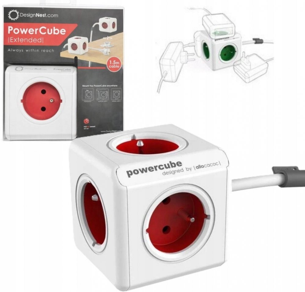 PowerCube EXTENDED je praktická a moderní zásuvka v podobě kostky s možností zapojení až 5 přístrojů. Disponuje napájecím kabelem s klasickou délkou 1,5m. Tuto zásuvku lze libovolně kombinovat s dalšími verzemi ORIGINAL a ORIGINAL USB. Značka PowerCube je vítězem ankety Red Dot Design Award 2014. Vhodné pro běžné domácí zásuvky. Určeno pro vnitřní použití. Kostka je vybavena dětskou pojistkou. Součástí balení je montážní blok s oboustrannou lepicí páskou.