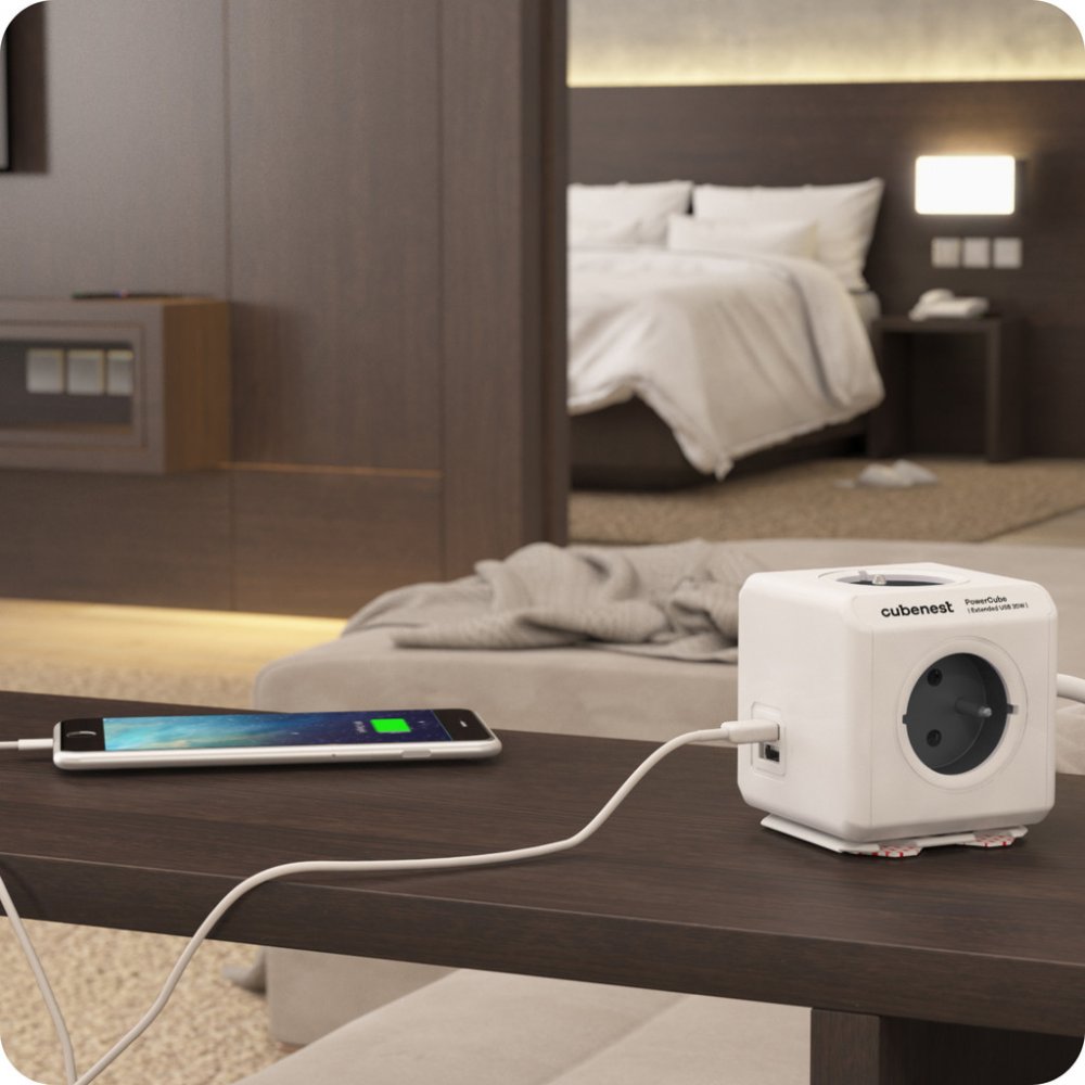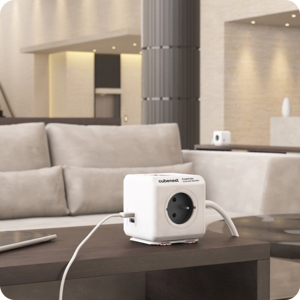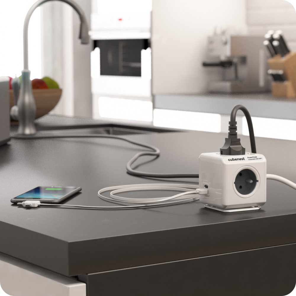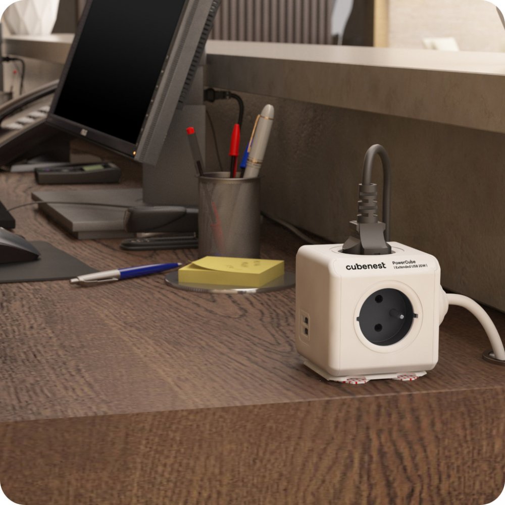 Zapomeňte na nepřehledné a neestetické prodlužovací kabely a rozbočky. Cubenest PowerCube Extended USB A+C je elegantní rozbočovač, který vaše prostředí přetvoří do moderního a efektivně využitého prostoru. Je kombinací dvou USB portů (1xUSB-A a 1xUSB-C), čtyř zásuvek a 1,5 m prodlužovacího kabelu, které jsou umístěny v kompaktním a stylovém těle. Díky unikátnímu rozmístění zásuvek nebudete mít problém s připojením jakékoliv nabíječky. Zásuvky se vzájemně neblokují a nepřekážejí jako u běžných prodlužovacích kabelů či rozboček. To vám umožňuje spojit více kostek a vytvořit tak kombinaci zásuvek a USB portů přesně podle vašich potřeb. Nová generace PowerCube používá nejnovější technologii PD - Power Delivery, která se přizpůsobuje nabíjenému zařízení. Automaticky funguje v režimech 5, 9 a 12V s výkonem 20 W. Zásuvky v PowerCube jsou uzemněny a obsahují dětskou pojistku. Konstrukce každé PowerCube je pro větší bezpečnost vyrobena z kvalitního a odolného ABS plastu. V kanceláři i doma často nemáme elektrické zásuvky na dosah. PowerCube Extended má v balení montážní dok pro jednoduché uchycení, takže rozbočovač umístíte přesně tam, kde ho nejčastěji používáte. Lze jej snadno přichytit pomocí dvou oboustranných pásek, stačí vytáhnout pomocné úchyty a montážní dok nalepit. Podporované technologie rychlého nabíjení: - PD 3.0, PD2.0, PPS - QC4.0+, QC3.0, QC2.0 - DCP, FCP, SCP, AFC - Apple 2.4, Samsung 2.0 - BC1.2, PE2.0, PE1.1 Technické parametry: - Výstupní výkon zásuvek: max 16A/250V 2300W/50-60Hz - Výstupní výkon USB-C: 5V/3A, 9V/2.22A, 12V/1.67A - Výstupní výkon USB-A: 5V/3A, 9V/2A, 12V/1.5A - Výstupní výkon USB-A + USB-C: 5V/3.1A - Hmotnost: 483 g - Rozměry: 73 x 73 x 92 mm - Prodlužovací kabel: 1,5 m Rozbočovací kostky PowerCube vyhrály ocenění Red Dot Design Award.