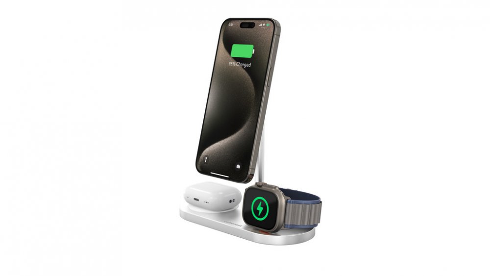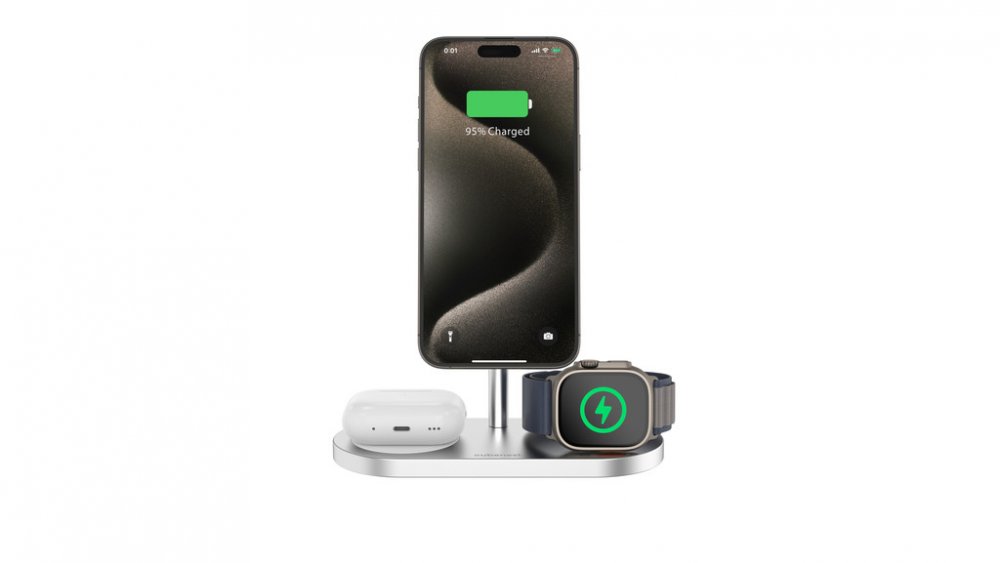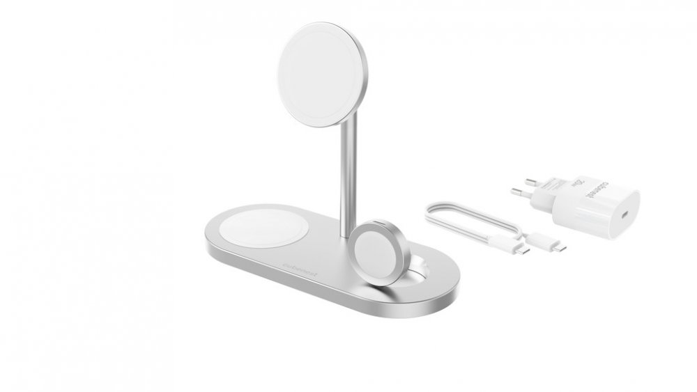CubeNest 3v1 Bezdrátová magnetická nabíječka S313 Pro Silver - podrobné informace: Magnetická, elegantní, víceúčelová!Bezdrátová magnetická nabíječka 3v1 od Cubenest je navržena k nabíjení dvou zařízení a Apple Watch současně. Zvolte kombinaci dle svých potřeb a mějte na svém stole pořádek bez zbytečných kabelů! Pohodlně a rychle nabijete ve stejnou dobu dva telefony anebo telefon a bezdrátová slu...