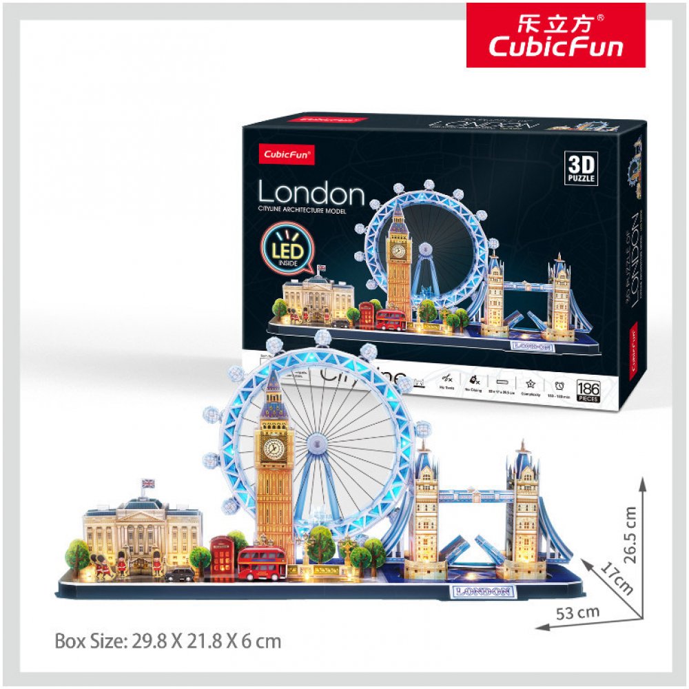 Rozměr balení cca 30 x 22 x 6 cm (D x V x Š).Rozměr složeného puzzle 53 x 17 x 26,5 cm (D x V x Š).3D puzzle jsou ideální hračkou pro tvořivé a výtvarně nadané děti. Stačí trocha trpělivosti a z jednotlivých dílků lze poskládat téměř cokoliv. V nabídce najdete stroje, vojenskou techniku, budovy, mosty, věže, lodě, chrámy, katedrály i sportovní stadióny. Jednotlivé stavebnice se liší složitostí sestavení a to ovlivňuje i počet dílků v sestavě. Záleží na Vaší zručnosti a trpělivosti. Stavebnice Vám určitě nějaký čas zabere než z jednotlivých dílků sestavíte úžasná díla. 3D stavebnice je vyrobená z pevného materiálu – pevný kartón kašírovaný potisknutým papírem. Po sestavení vypadají- Puzzle 3D skvěle jako dekorace v dětském pokoji. Obtížnost přizpůsobte vlastním zkušenostem.