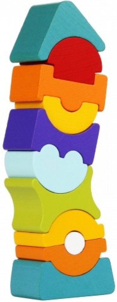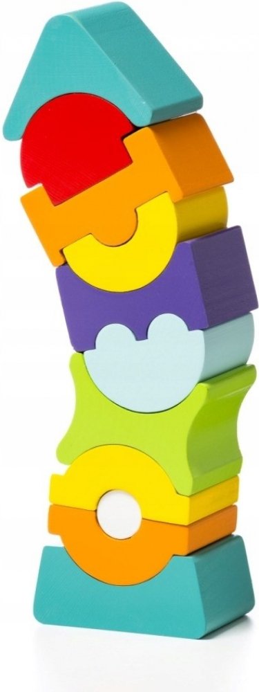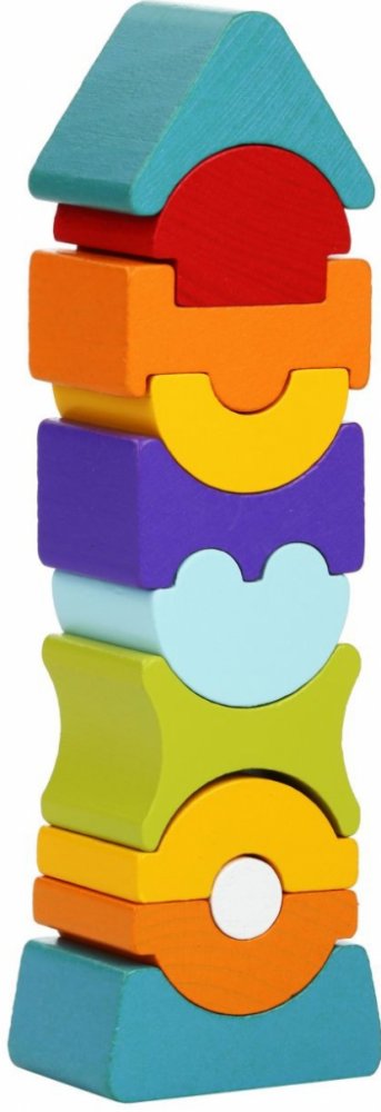 Balanční věž IX je dřevěná skládačka s 11 barevnými díly, které na sebe vzájemně musí správně pasovat tak, aby bylo možné věž postavit. Díky zaobleným dílům a konstrukci nemusí stát tato věž
