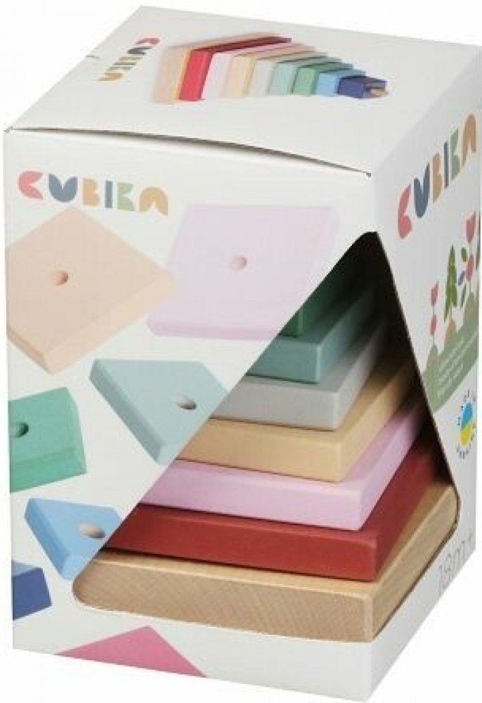 CUBIKA je značka dřevěných hraček vyrobených pouze z ekologicky pěstovaného dřeva s velmi precizním opracováním a líbivým designem a tento výrobek patří do nové kolekce vyrobené v pastelových barvách. Barevná pyramida se slepičkou je dřevěná skládačka s 8 díly, které by na sebe měly být poskládány tak, aby bylo možné zachovat při stavbě správný tvar starodávné egyptské pyramidy a zároveň zachovat plynulou posloupnost barev. Při její stavbě se také děti naučí co je to kompatibilita. Sortiment hraček značky CUBIKA pomáhá dětem rozvíjet především senzomotorické schopnosti a dovednosti, logické myšlení, kreativitu, představivost a různé poznávací znalosti. Hračky jsou vyrobeny z nejkvalitnějšího javoru a buku a k barvení se používají též vysoce kvalitní barvy na vodní bázi, které jsou naprosto bezpečné pro děti a nemají žádný zápach. Všechny výrobky této značky mají německý certifikát TÜV a jsou vyrobeny dle evropské normy pro bezpečnost hraček EN 71. Doporučený věk od 18 měsíců. Vyrobeno v Evropě.