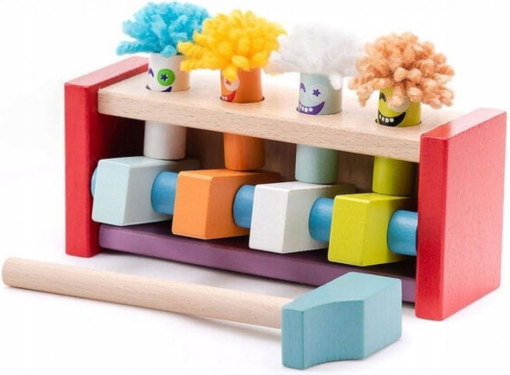 Zatloukání je ideální aktivita pro trénink koordinace oko–ruka a posílení úchopu. Hra podporuje soustředění a samostatnost při bezpečném a zábavném hraní.