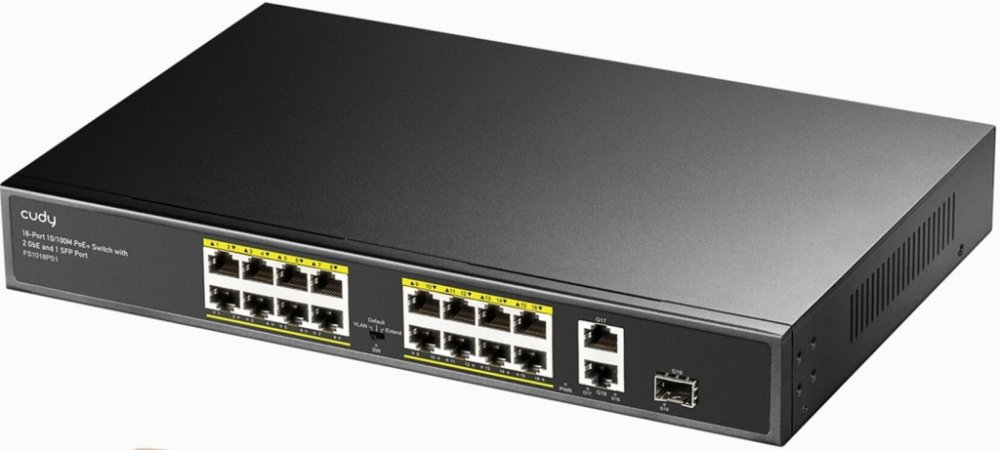 Není vyplněn Alternativní text k fotografii! Switch CUDY Získejte až 16 portů, které vám umožní využívat PoE napájení (vyhovuje standardu IEEE 802.3at / IEEE 802.3af). Budete moci ve vašem okolí provozovat například přístupový bod, VoIP telefony, tiskárny nebo IP kamery. Switch CUDY umožňuje až 30W napájení na každém portu, přičemž celkový napájecí výkon na všech portech nesmí přesáhnout 200 W. Ne...