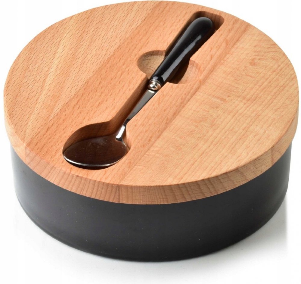 ✅ Nádoba z porcelánu v černé barvě, bambusové víko, kovová lžička součástí balení