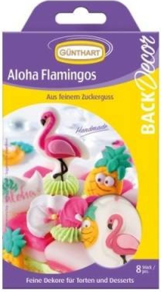 Cukrová dekorace na dort Aloha plameňák 8ks v balení - Gunthart