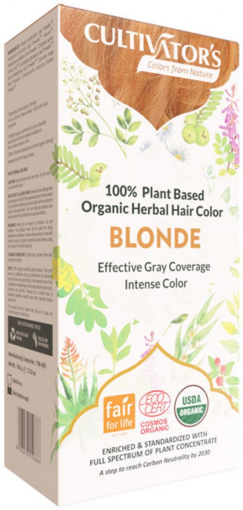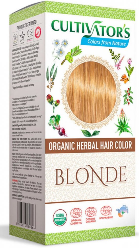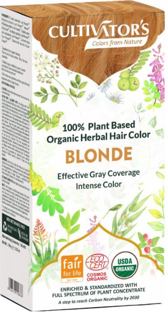 Polopermanentní barva rozvíjí vlasy bez námahy, protože snadno přilne k vlasovým kutikulám. Snadno obarví vaše vlasy doma bez jakéhokoli poškození. Složení je udrží přirozeně hebké, hladké a zdravé bez použití amoniaku a peroxidu vodíku a chemických látek. Barva na vlasy Cultivator kombinuje ájurvédu s inovacemi. Jedná se o bylinnou barvu na vlasy s jedinečnou směsí certifikovaných přírodních bio bylin, které dodávají pokožce hlavy a vlasům revitalizační účinek.- Vynikající krytí šedin a bílých vlasů s dlouhotrvajícími výsledky.- Vyrobeno ze 100 % certifikovaných bio bylin.- Bez použití chemikálií, peroxidu, čpavku, PPD, parabenů, GMO a dalších složek .- Dermatologicky testováno v Evropě.- Baleno v 100% recyklovatelných obalech.Běžné barvy na vlasy na chemické bázi jsou plné amoniaku, který poškozuje vlasy a je hlavní příčinou padání vlasů.Krabička obsahuje čepici a pár rukavic, které jsou vyrobeny z kyseliny polymléčné PLA, která je šetrnější k životnímu prostředí než tradiční plast. Emise uhlíku jsou u PLA o 80 % nižší.INCI: Cassia auriculata Leaf Powder, Indigofera tinctoria Leaf Powder, Henna, Phyllanthus emblica Fruit Powder, Ziziphus spina-Christi Leaf, Eucalyptus globulus Leaf Powder, Aloe barbadensis Leaf Powder, Curcuma longa Root Powder, Chamomilla recutita Flower Powder