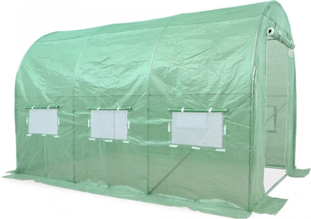 Tunel je vybaven 6 uzamykatelnými větracími okny s moskytiérami, které nejen zajišťují dostatečnou cirkulaci vzduchu, ale také umožňují regulovat teplotu a vlhkost uvnitř. Díky tomuto řešení můžete podmínky volně přizpůsobit aktuálním potřebám a moskytiéry účinně chrání interiér před hmyzem.