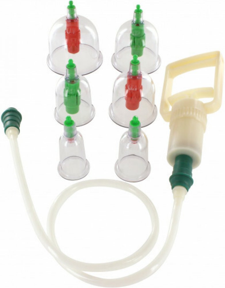 K výhodám podtlakové sady Cupping Vacuum Cup set vakuové pumpy patří taky fakt, že baňky drží i po jejich odpojení od pumpy.