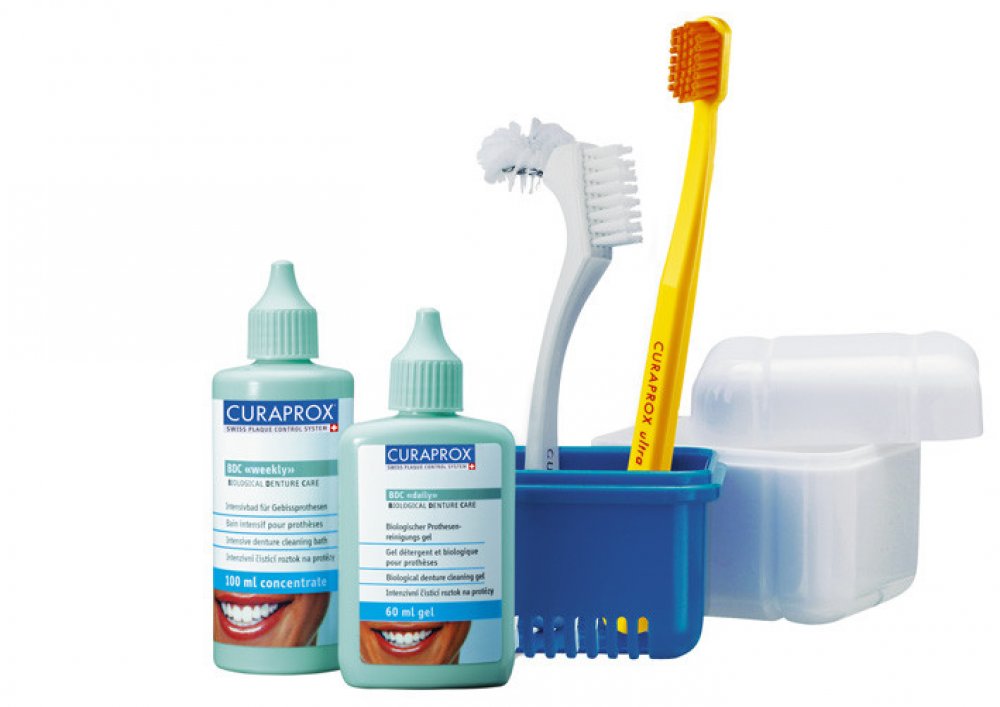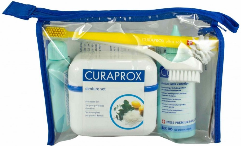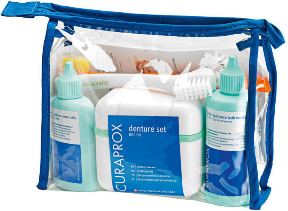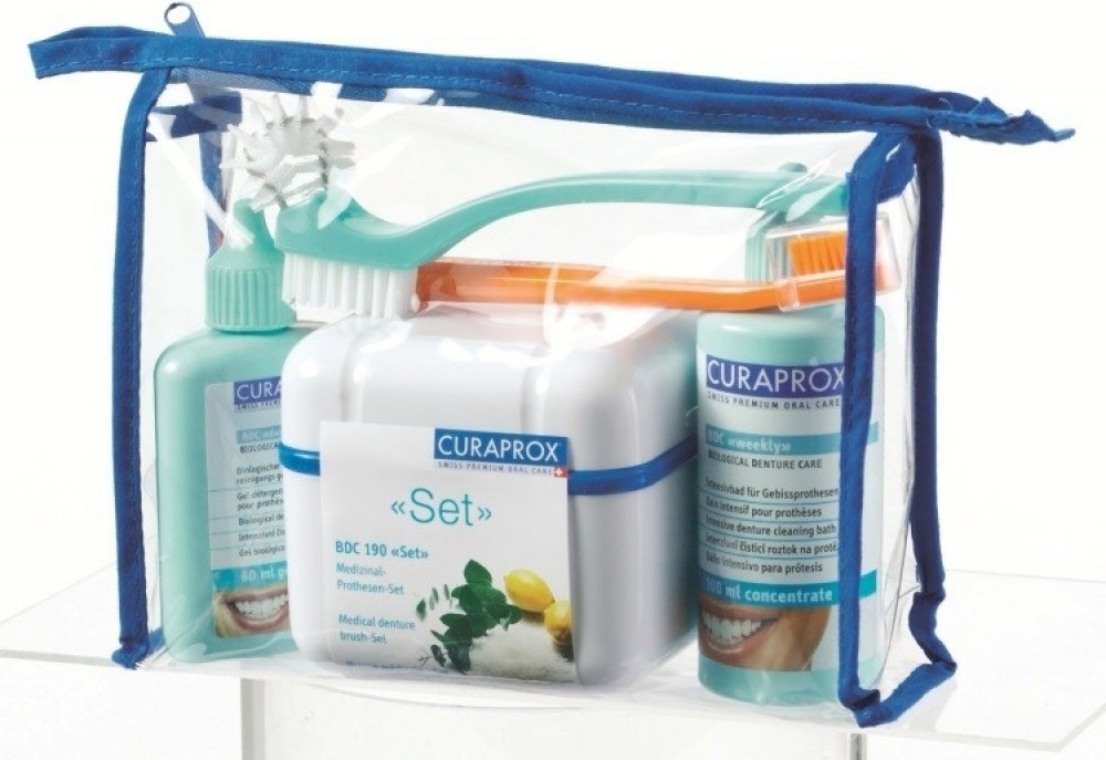 BDC 190 “set”Pro dokonale čisté zdravé dásně a protézu!Sada péče CURAPROX Care Kit v atraktivní toaletní tašce obsahuje:CURAPROX BDC “denní” pro každodenní čištění, BDC “týdenní” pro intenzívní týdenní čištění, BDC “dózu”, ideální čisticí nádobku, BDC “kartáček” pro efektivní mechanické čištění protézy, zubní kartáček CS 5460 PRIME pro jemnou masáž dásní a detailní návod.