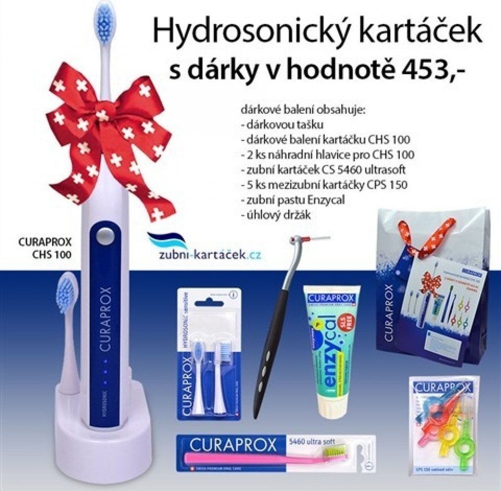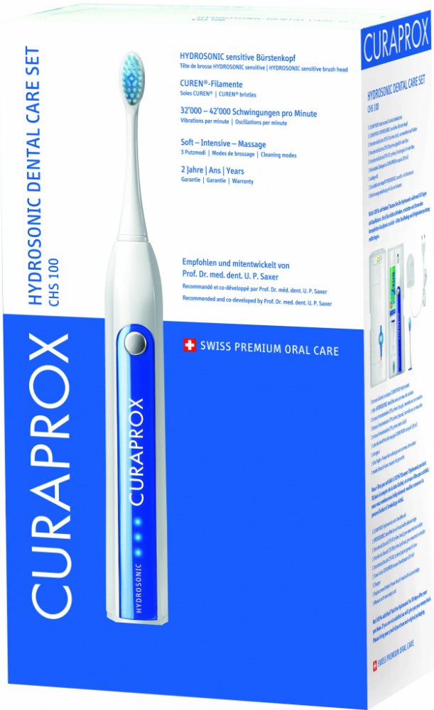 Účinné čištění s manuálním zubní kartáček není tak jednoduché. Kdo vlastně ví, správný postup? Vlivem přílišného tlaku na povrch zubů mají manuální zubní kartáčky za následek poškození skloviny a dásní. Optimálním tlakem a vysokým čistícím účinkem Curaprox Hydrosonic CHS 100 zajistí, že Vaše zuby a dásně budou zdravé a krásně bílé.