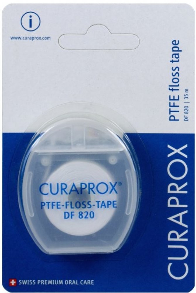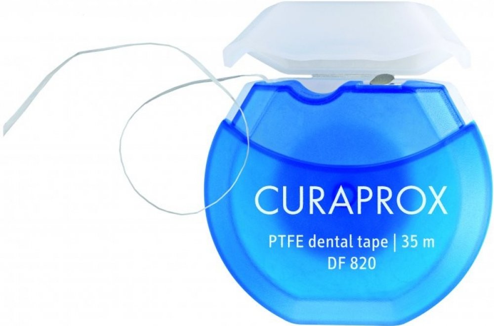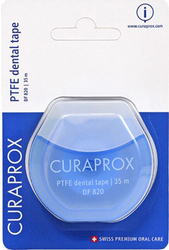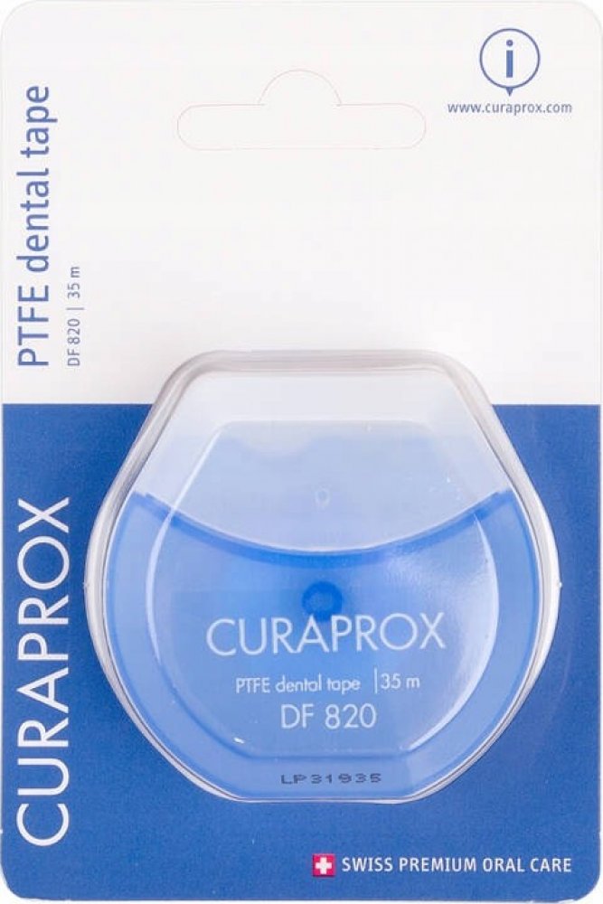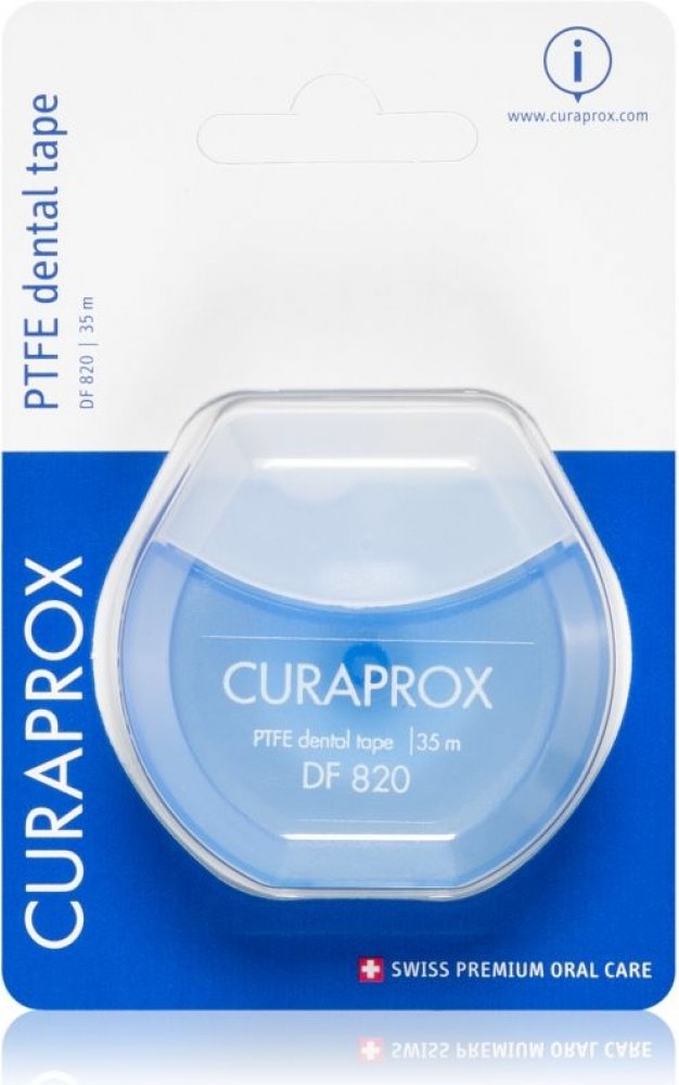 Mezizubní nit Curaprox DF 820 je balena v blistru, s dávkovačem + 35m.