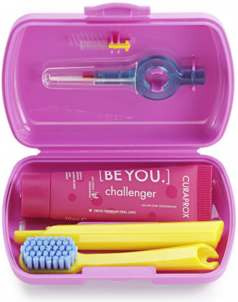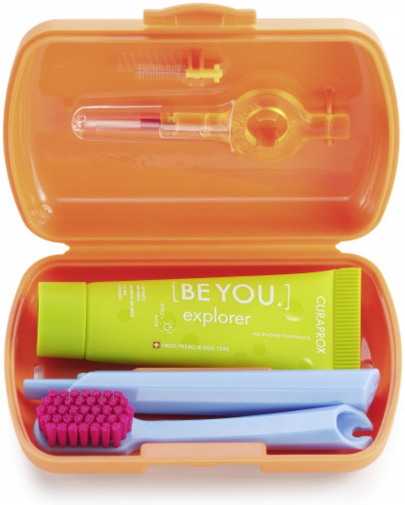 Ideální společník na cesty? Žádné kompromisy ve stylu. Žádné kompromisy v oblasti zdraví ústní dutiny. Vaše oblíbené produkty CURAPROX v kufru, příručním zavazadle – nebo v kapse. Tato živá, stylová cestovní sada měří pouhých 9,5 cm x 6 cm.