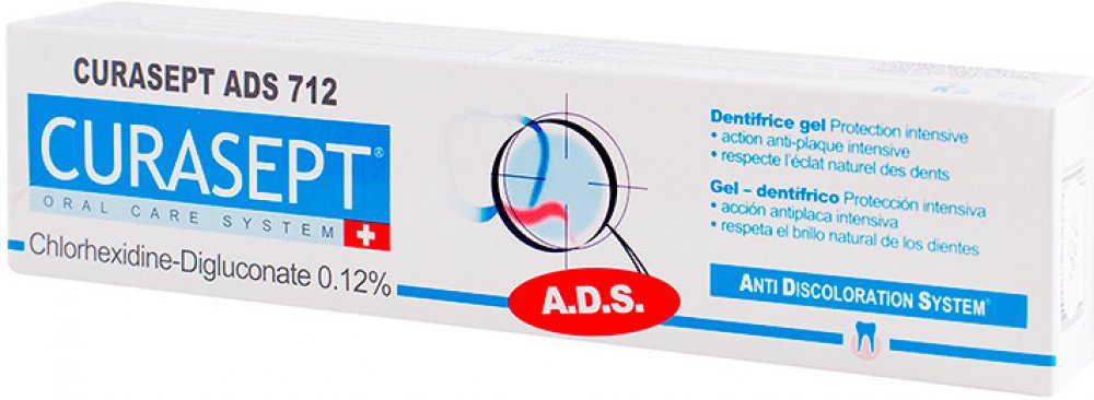 Zubní pasta vhodná při obtížné nebo těžko proveditelné mechanické hygieně v případě ortodontického, protetického nebo parodontálního léčení. Ideální pro osoby s ortodontickými aparáty, implantáty a potížemi v oblasti periodontální tkáně, která je vystavena vyššímu riziku zubního kazu. Zubní pasta Curasept ADS 712 se silným antibakteriálním účinkem, je určena pro střednědobé užívání.