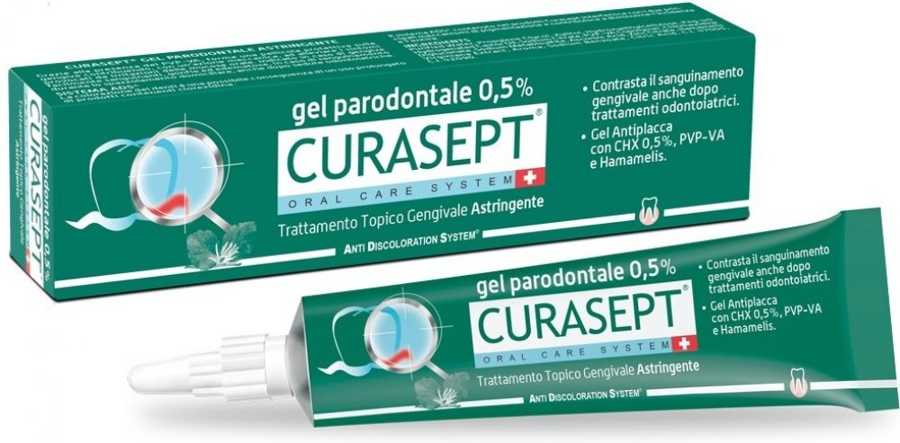Parodontální gel CURASEPT ADS Adstringent 0,50% chlorhexidin + hamamelis + PVP-VA je účinný u silně zanícených oblastí dutiny ústní. Stahujícími účinky pomáhá při zánětech dásní a při silném krvácení dásní. Adstringentní účinek okamžitě zmírňuje krvácení, omezuje zduření a otoky po chirurgickém zákroku. Díky složce PVP-VA vytváří na dásních ochrannou vrstvu, která mechanickým způsobem urychluje ho...